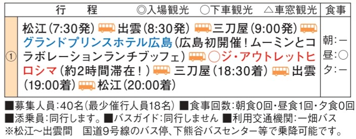 - ※松江~出雲間 国道9号線沿いのバス停、下熊谷バスセンター等で乗降可能です。