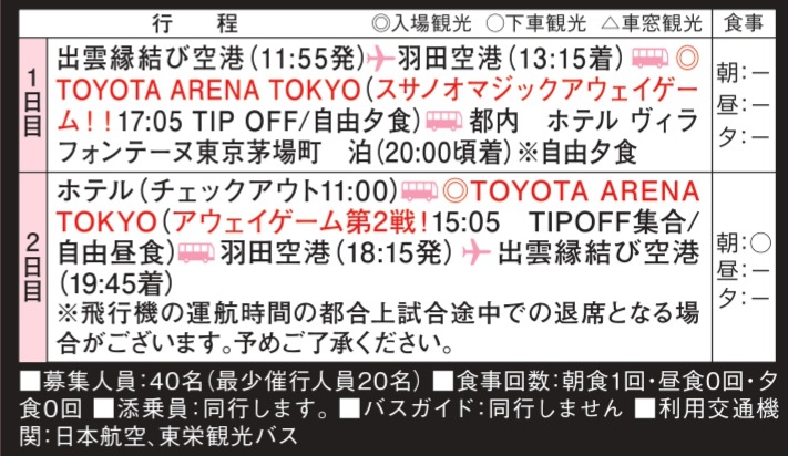 強敵アルバルク東京のホーム「TOYOTA AREANA TOKYO」での2連戦応援ツアーです。