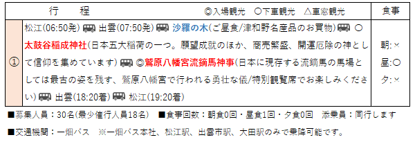 松江・出雲・大田発着(大人おひとり様あたり)17,000円