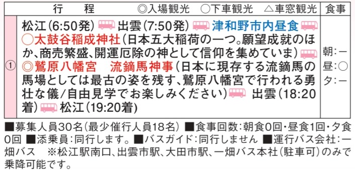 松江・出雲・大田発着(大人おひとり様あたり)17,000円